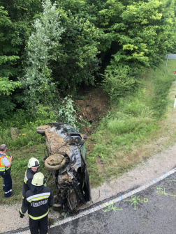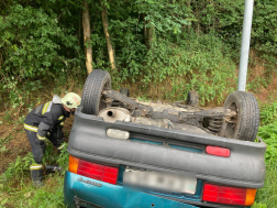 Árokba borult egy személyautó Gellénháza közelében (FOTÓ: Gömbös Norbert tűzoltó százados - Zalaegerszeg HTP)